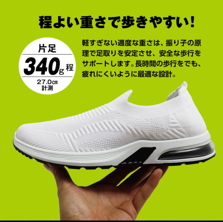 軽すぎない適度な重さ片足(340g程27.0cm計測)は、振り子の原理で足取りを安定させ、安全な歩行をサポートします。