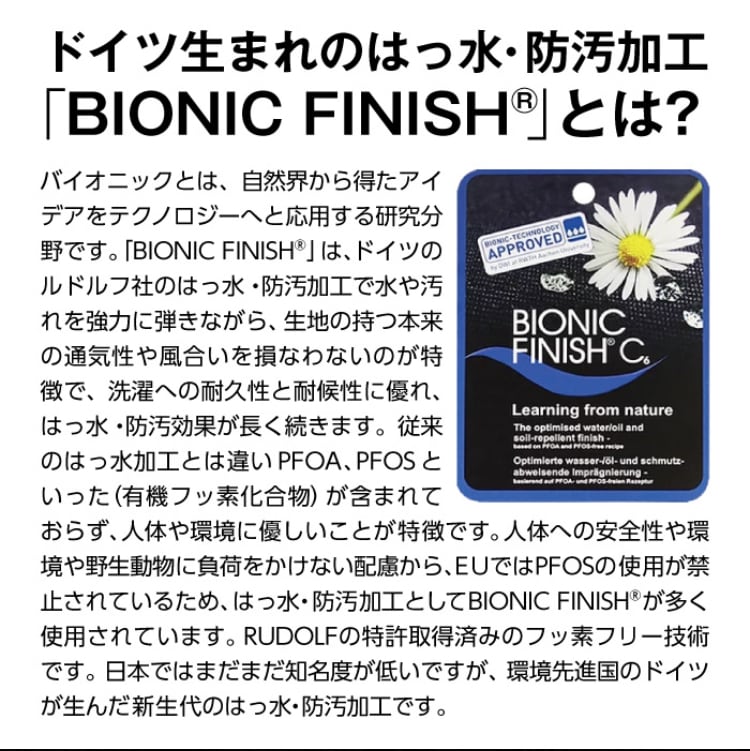 アッパーにドイツのルドルフ社が開発した、「BIONIC FINISHR」を施しています。